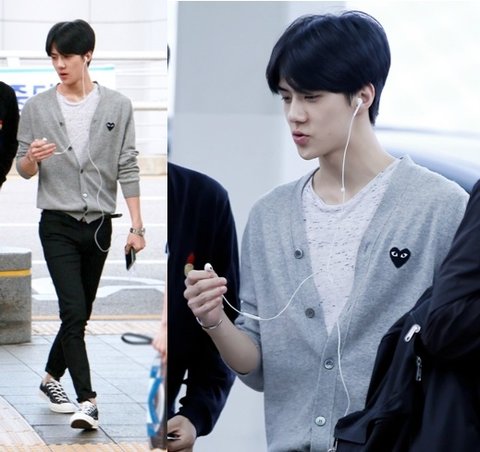 얼마 전 공항에서는 꼼데가르송 가디건과 뉴 컨버스로