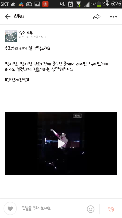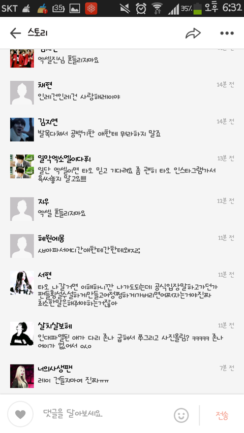 오랜만에 카스들어가서 엑소 스토리들어갔는데 댓글 보고 ㅅㅂ 초딩들 장사장에 대해서 몰르면 가만히 짭치고 있던가 짱빡까