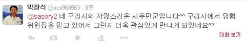 구리시의 자랑스러운 시우민군이라고 ㅋㅋ(국회의원 트위터)