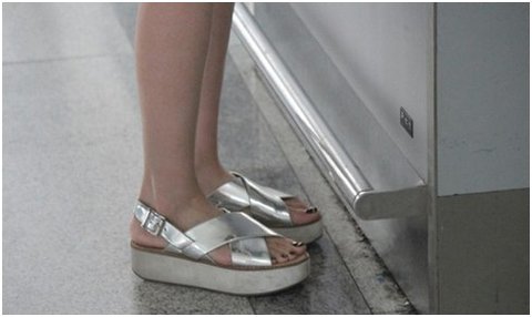 글로리 샌들 신고 서 있는 발목을 보니