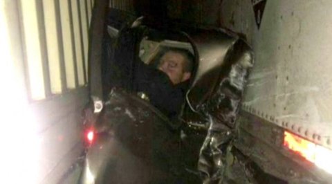 뒤따라오던 다른 트레이럴와 충돌하면서 두 트레일러 사이에 끼어버렸고,