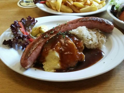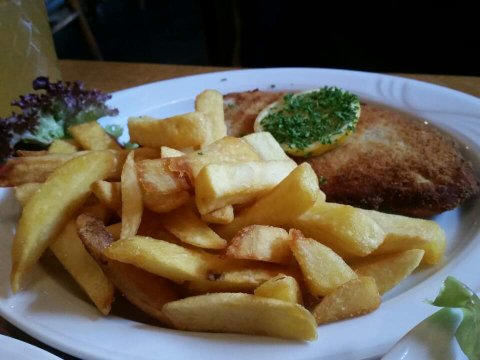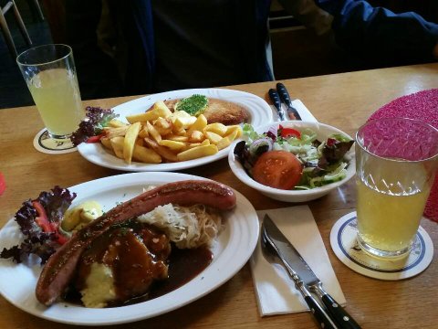 어쨋든 아펠바인과 프랑크푸르트 전통소세지, 슈니첼과 감자튀김을 시켰다.