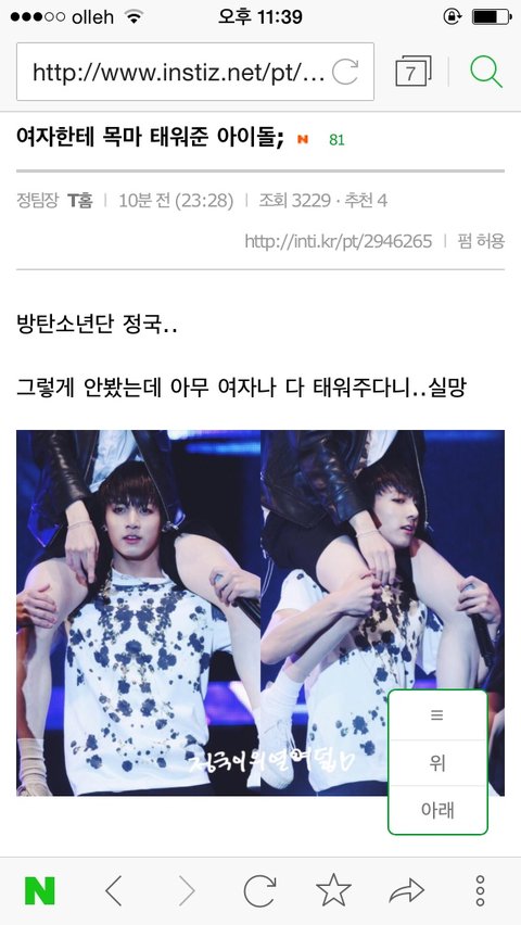 전정국 여자한테 목마 태워줬다고 떴었는데