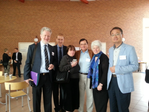 2013년 6월 스웨덴 팔룬시 소재 달라르나 대학교에서 개최된 세계신종교 국제학술회의 참가 시 종교 학자들과 기념사진을 찍고 있는 이경원 교수(오른쪽)
