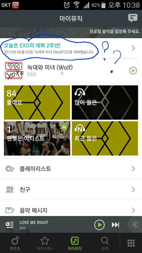 오늘 EXO 데뷔 2주년이라고 멜롱에 떠있네..