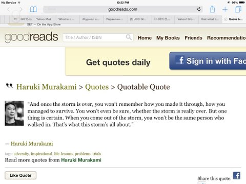 그리고 한 번 폭풍이 끝나면 어떻게 폭풍속에서 살아남았는지 살아남기 위해서 무엇을 했는지 당신은 기억을 못할것이다.