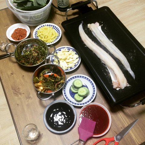 나름 구색 갖춘다고 생강도 썰고 양념소스까지 만들어서 바를거라고 실리콘 브러쉬도 사와서 장어구이 !!