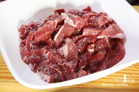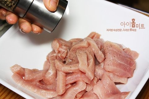 1.고기에 후추, 계란흰자만, 후추, 소금을 뿌리고 조물조물 해준다.