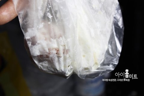3.위생비닐에 넣어 돼지고기에 덧 가루(튀김가루)를 입혀준다.-생략가능