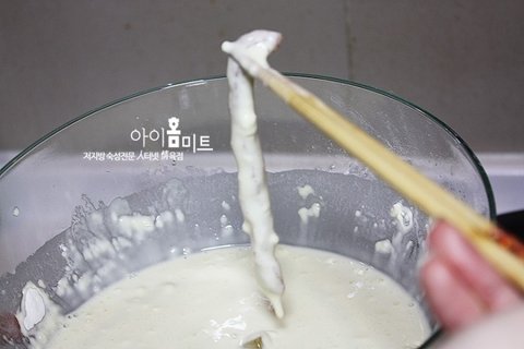 4.튀김물 : 볼에 튀김가루2컵, 탄산수 300ml를 넣고 섞어준다.