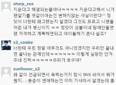 동준은 인스타그램 비공개로 돌리고 사진 전부삭제함. 정재은 비공개돌림. 정재은이 동준팔로두했었는데 언팔함.