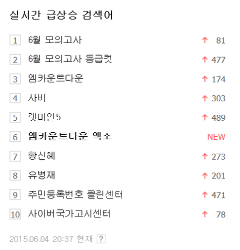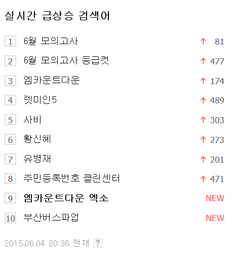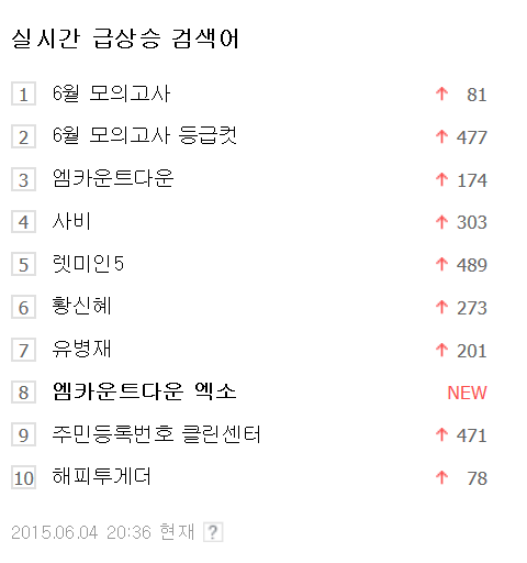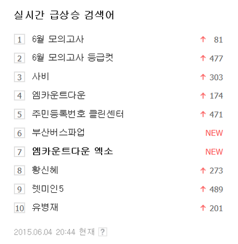 약 25분 정도 실시간 검색어에 '엠카운트다운 엑소' 라는 검색어를 실검에 올림.