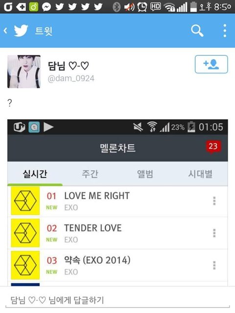 엑소 멜1론 1위했다고 지랄하는 담님이