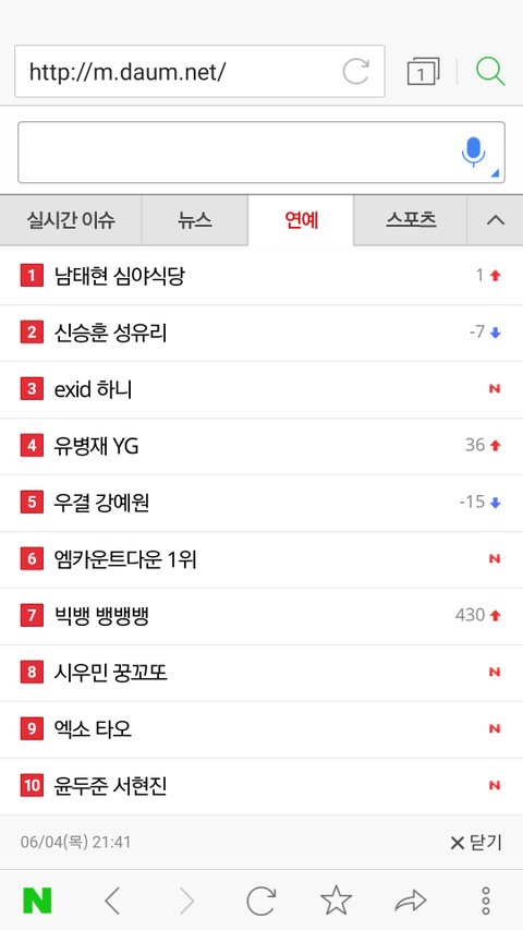 파란창 연예 검색순위ㅋ