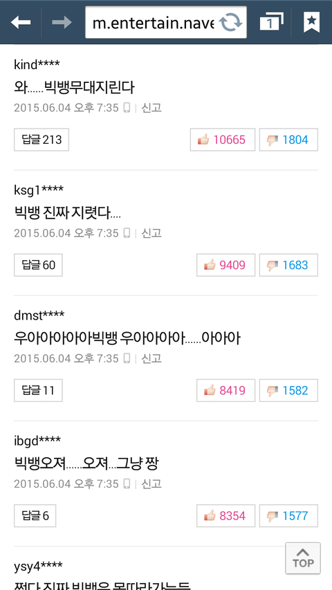 빅뱅 노래개별로라고 그러는데