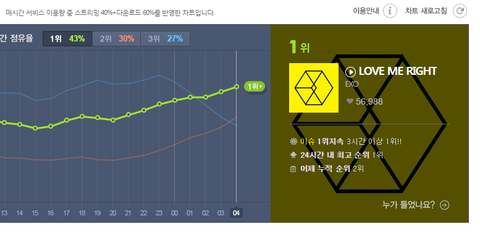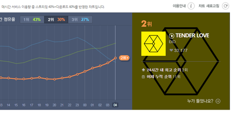4시 멜론차트 1위 럽미라잇 2위 텐더럽