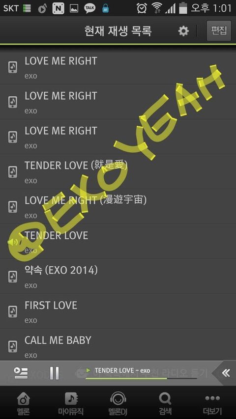 제목 옆에 음표만 떠야 정상아님? 이름도 대문자 EXO로 떠야되는거 아님??