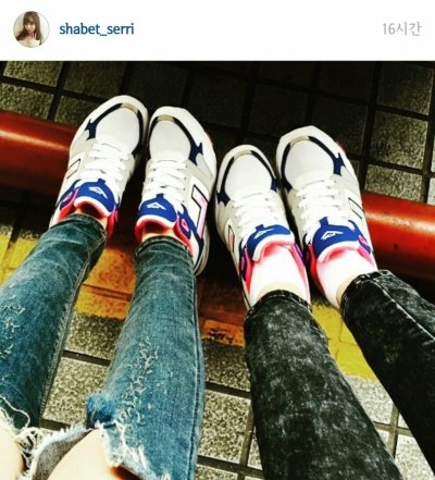 진에 매치하여 캐주얼한 스포티룩을 선보였어요 ㅎㅎ