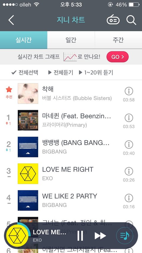 ㅈㄱㄴ 불안 ㅠㅠㅠㅠ 지니차트도 엑소 3위로 밀려남;;