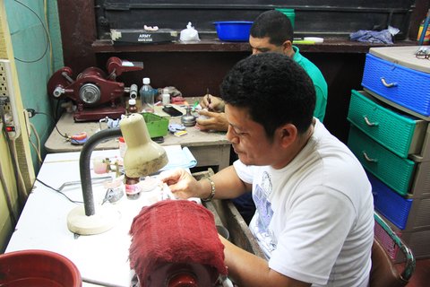 뭔가를 만들고 있다... 자세히 들여다 보니 틀니였다.