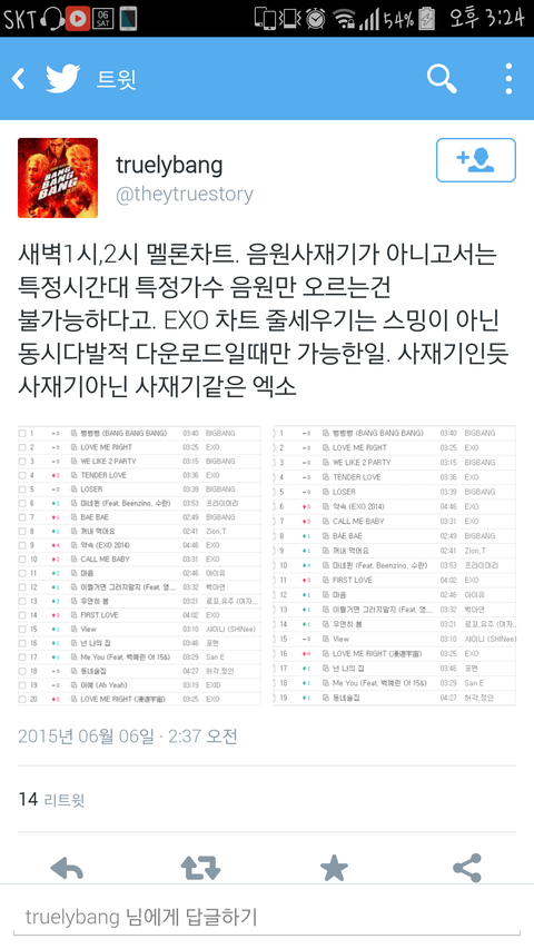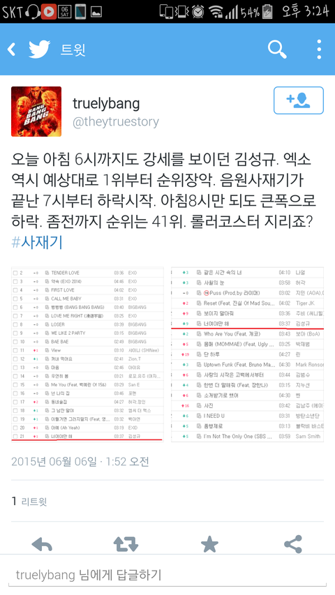 빅뱅팬이 엑소 김성규 사재기의혹이란다
