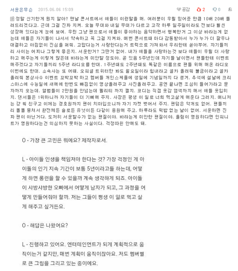 데뷔 5년차인데 항상 팬들이 좋아해준다는걸 신기해하고 사소한거 하나하나 감동받고!