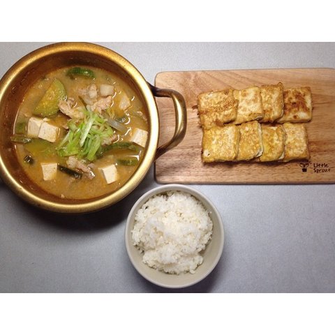 돼기고기 된장찌개 +두부구이?부침?