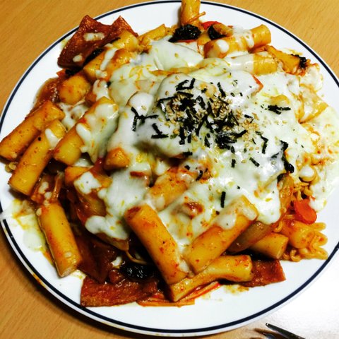 불닭볶음면 소스가 부족하므로ㅋㅋ떡볶이는 떡볶이대로 만들고, 불닭볶음면은 불닭볶음면대로