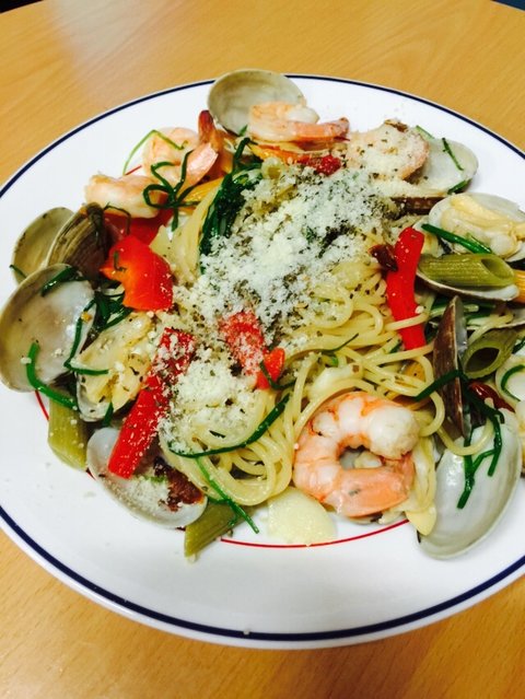 알리오올리오 해먹다가, 뭔가를 첨가하고 싶어서 장볼때 큰맘먹고 바지락과 새우를 샀습니다.