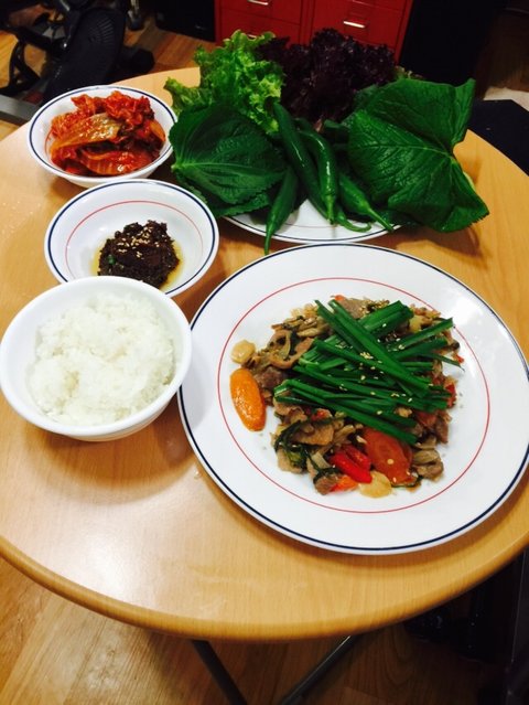 마트가서 뭐먹을까 고민하다가 곰취를 보는순간....돼지고기를사서 두루치기!!