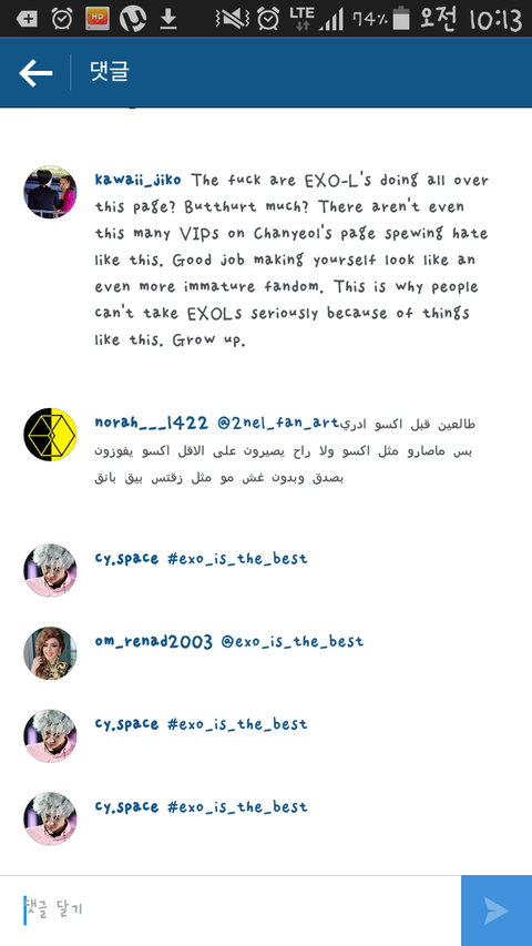 첫번째 덧글 해석: 시발 여기 페이지에 왤케 무개념빂들이 많냐? 찬열페이지에는 빂들 거의 없던데 조카 짜증;