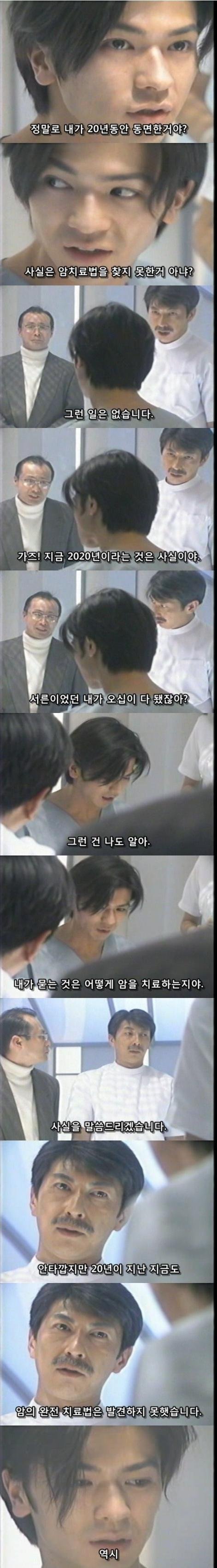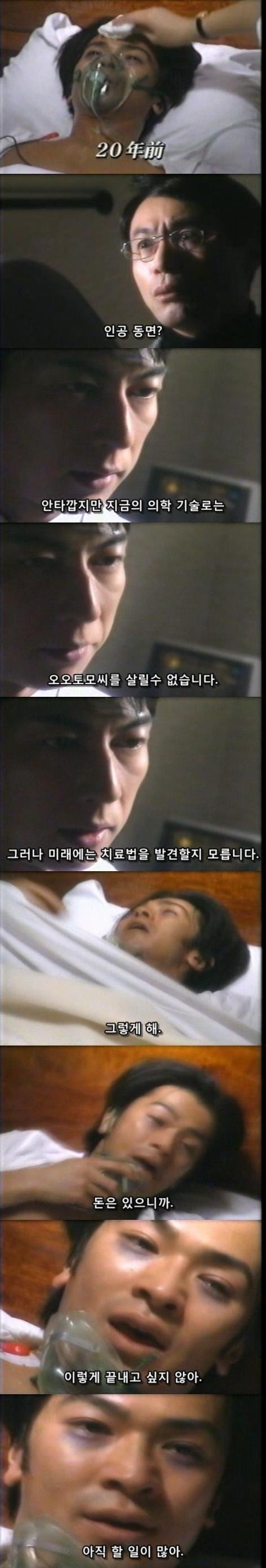 사실 남주는 20년전 유명한 가수였는데, 암이걸려버림. 하지만, 남주의 암은 그당시의 의학기술로는 치료할 수 없는 것이었고 삶의 미련때문에 남주는 인공동면을 하기로 결정 했던것.