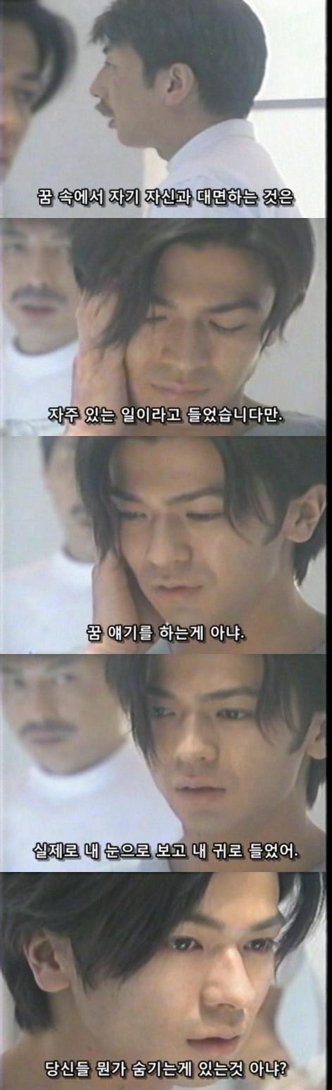 그것은 남주의 도플겡어였음! 그 도플겡어는 남주와 얼굴, 머리스타일, 심지어 남주가 현재 입고있는 옷(병원복)까지 똑같음.