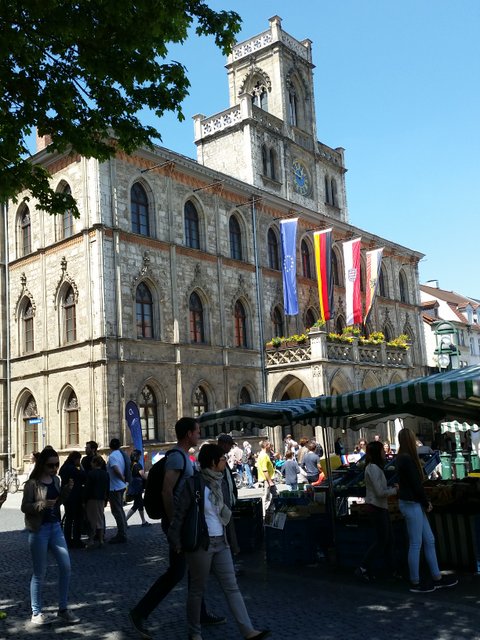 이곳이 바이마르 시청건물! 앞에서 사람들이 천막치고 수공예품 및 독일식 소세지 ,핫도그 등등을팔고 악단들도 연주를하고 진정 유럽 소공국에 온 느낌을 주었던 곳!