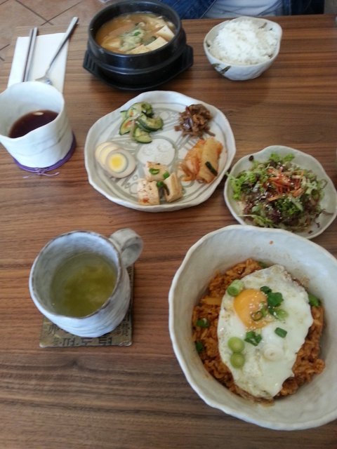 여튼 내가 동생과 함께 시킨음식은! 된장찌개랑 소고기볶음밥! 매실차와 모과차였나?