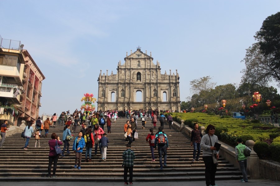 육포거리가 나오고 세나도 광장과 더불어 마카오의 상징인 세인트 폴 대성당이 멀리 보이네요!