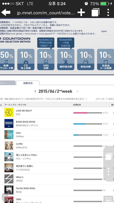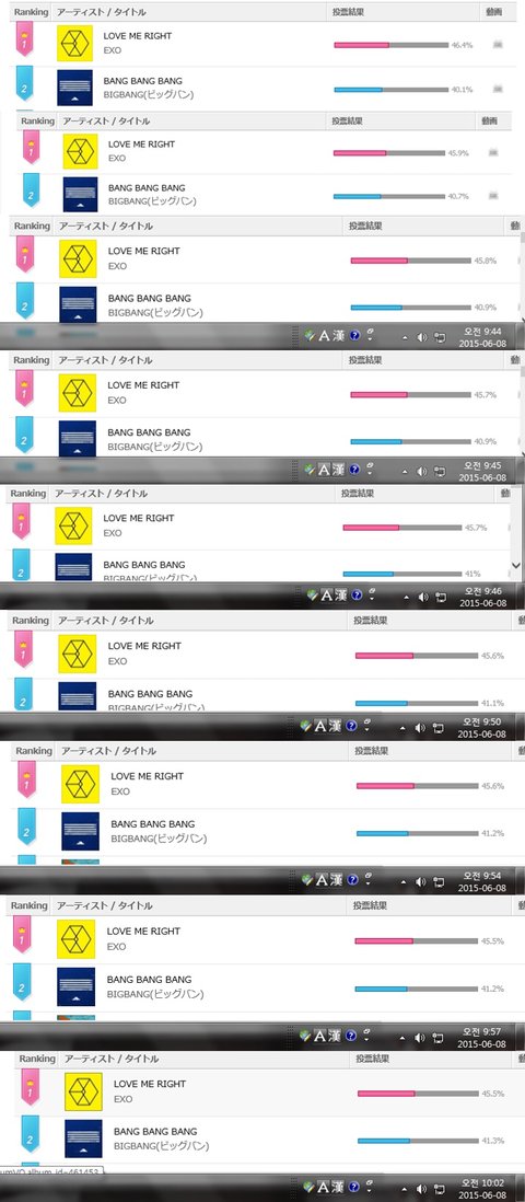엠넷 재팬 투표가 끝나서 막혔는데도 계속 상대방 투표율이 오름