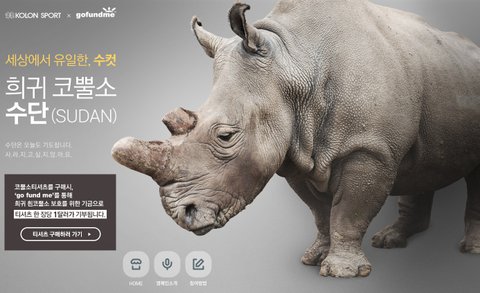 go me fund를 통해서 흰코뿔소 보호를 위한 기금으로 티셔츠 한장도 1달러가 기부도 되고!
