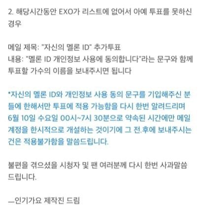 야 상대는 방송국이다 우리 시청자니까 정당하게 잘못 바로잡아 달라고 요구할 권리는 있지만 진상은 부리지 말자고 그래봤자 무개념 팬덤 소리 듣고 엑소만 곤란함 댓글 읽는 애들아 항의 메일을 보내라는 얘기가 아니라는 건 알지?