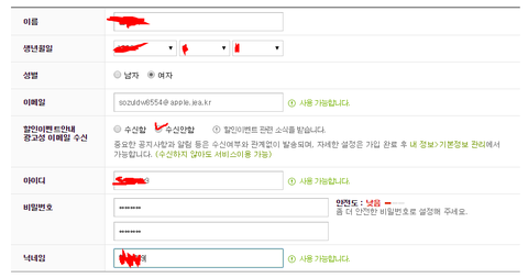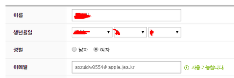 2. 이름, 생년월일, 성별은 모두 통일해서 아무거나 적는다.