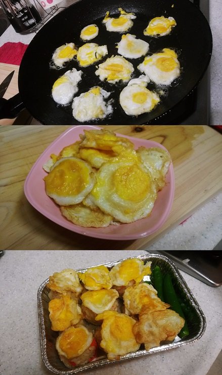 미니후라이 굽고나서 응용버전으로 미니후라이를 품은 주먹밥을 만들었어요ㅎㅎ