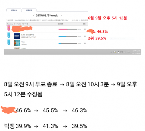 정작 엠카 공식 입장엔 빅뱅에 대한 언급 1도 없는게 사실이고 9시 이후 집계된 표를 삭제한 후에 빅뱅만 점유율 깎인게 아니라 엑소도 깎였는데ㅠㅠ