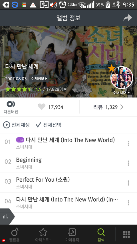멜론 역대 별점이 소시 다만세임??? 별점이 이것보다 높거나 같은 앨범은 없음???