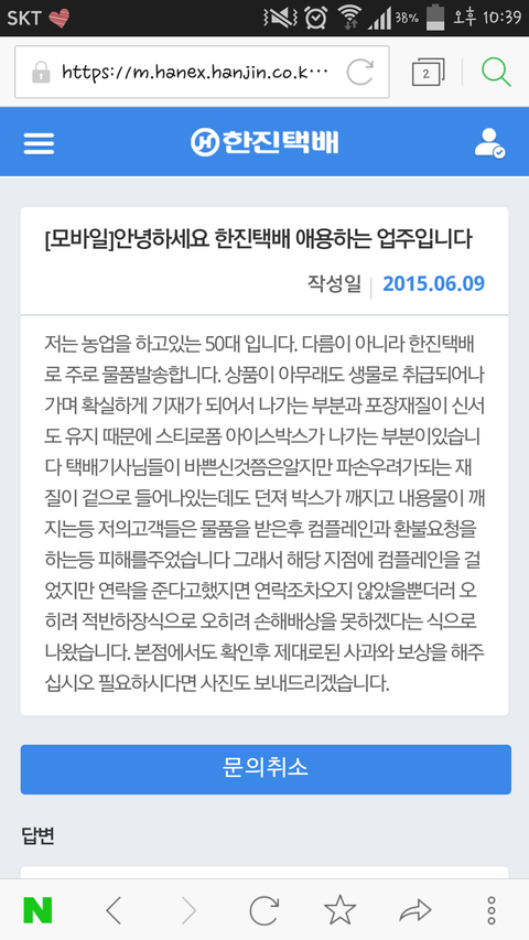 이번에 택배의 실수로 인해 손해봐서 이렇게 글을 씁니다..