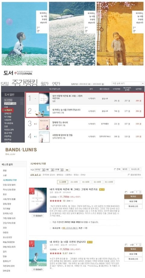 한편 김준은 시집 '내 하루는 늘 너를 우연히 만납니다'는 온오프라인 서점 반디앤루니스, 영풍문고, 교보문고, 예스24, 인터파크, 알라딘 등에서 시 부문 1위를 지키고 있는데 이어 에세이집 '내가 이렇게 아픈데 왜 그대는 그렇게 아픈가요'로 에세이집 부문에 베스트셀러로 등극했다.
