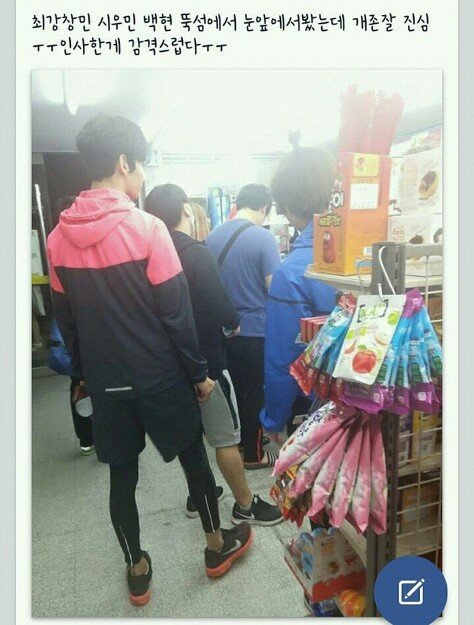 뚝섬에서 시우민, 백현, 최강창민, 트레이너 이렇게 운동하고 문구점?에 들어갔대