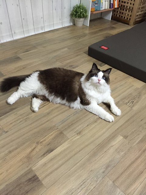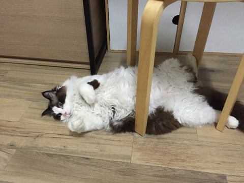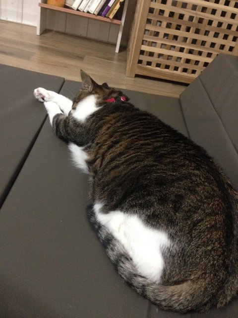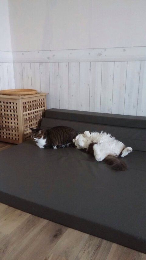 한 여름같은 날씨에 털코트를 입고있는 우리 돼지냥이들은