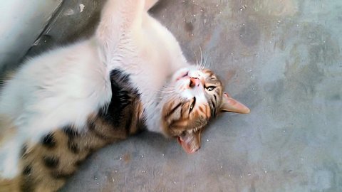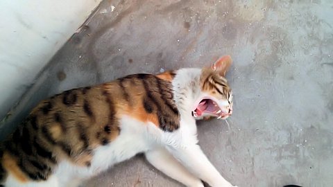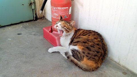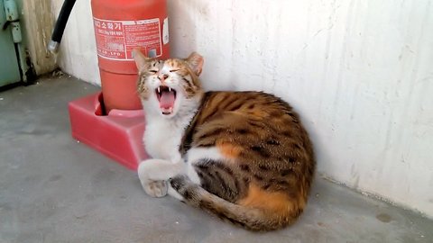 카메라를 보면서 하품하는 길고양이 람쥐