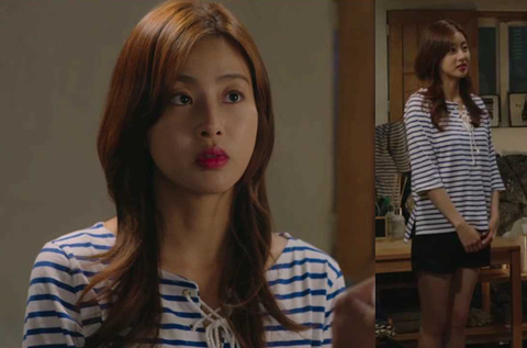 마린마린한 에이치커넥트 스트라이프 티셔츠 입고 서있는데