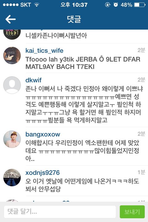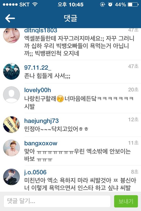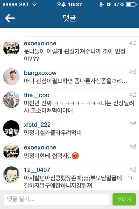 민정이란 애가 인스타로 funexolexo라는 닉으로 애들 사진 이상하케해서올리고 옆에 자해나 귀신 괴물 시체사진같은거 올리는데 사펜줄...근데 댓글 조카웃겨 ㅋㅋㅋㅋㅋㅋㅋㅋㅋㅋㅋㅋㅋㅋㅋㅋ오히려 친찬 ㅋㅋㅋㅋㅋㅋ야엑셀 니네진짜 ㅋㅋㅋㅋㅋ